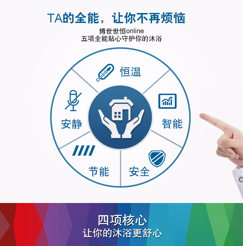 智能恒溫控制系統(tǒng),根據冬夏季節(jié)對水溫的不同要求,來調節(jié)水量,在最經濟、環(huán)保的能耗下,讓您舒適沐浴。